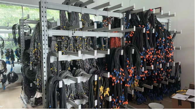 倉儲(chǔ)中為了應(yīng)對(duì)這樣的難題,我們對(duì)此做了一些創(chuàng)新,設(shè)計(jì)了懸臂貨架。兩根突出來的懸臂中間放上一根鋼管,電線電纜可以在存放的時(shí)候繞好穿插在鋼管上,這樣無論放置多久都不會(huì)散亂,取得時(shí)候也極為方便,只需要拿下鋼管即可。有外出任務(wù)的時(shí)候,還可以直接帶著鋼管走,這樣到了工作地點(diǎn),線纜也不會(huì)出現(xiàn)雜亂的問題。